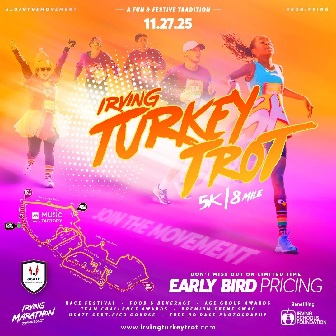 Sign up to volunteer individually, as a group, with your friends, family, or organization! Want to have your own water station along the course with your team or organization's name on it? Sign up now and email us at info@irvingmarathon.com. Volunteer for a great cause! Founded in 2012. Our mission is to keep the community engaged year-round by not only motivating, encouraging, and rewarding healthy lifestyles; but by creating an incredibly fun and unforgettable experience. Each event brings people from all over the world together for a great cause by providing meals for children, school supplies, scholarships, and more!